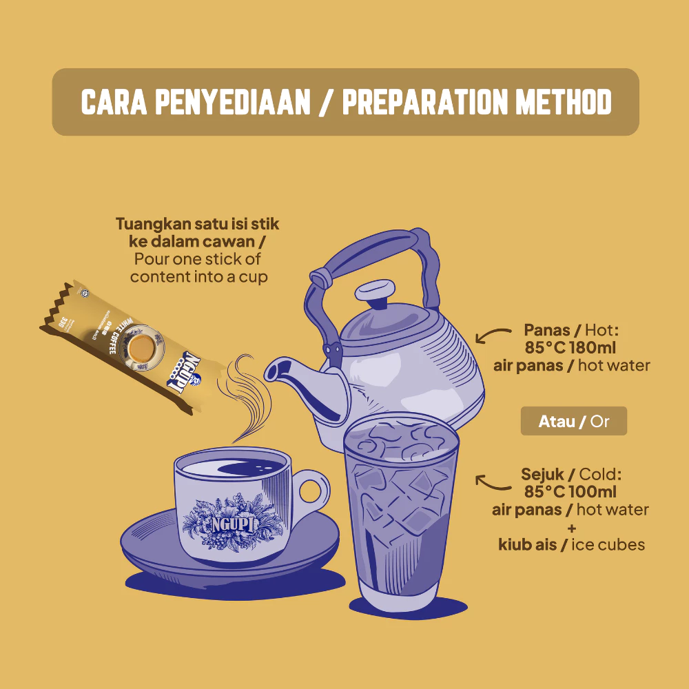 ZUS introduces Ngupi® White Coffee, our homage to the traditional drink. Rich in flavour with bold taste notes and an aromatic sweetness, Ngupi® White Coffee is perfect for those who crave the local experience—made convenient for your ease.